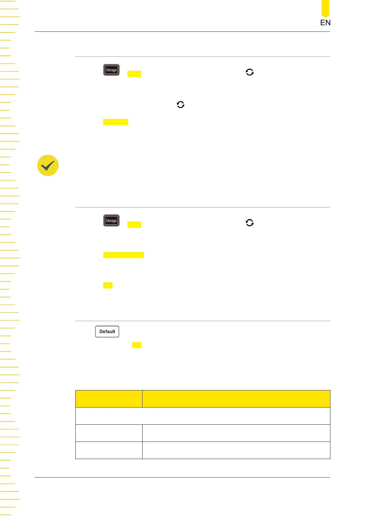 is displayed. Press OK or tap OK to restore the instrument to its factory default