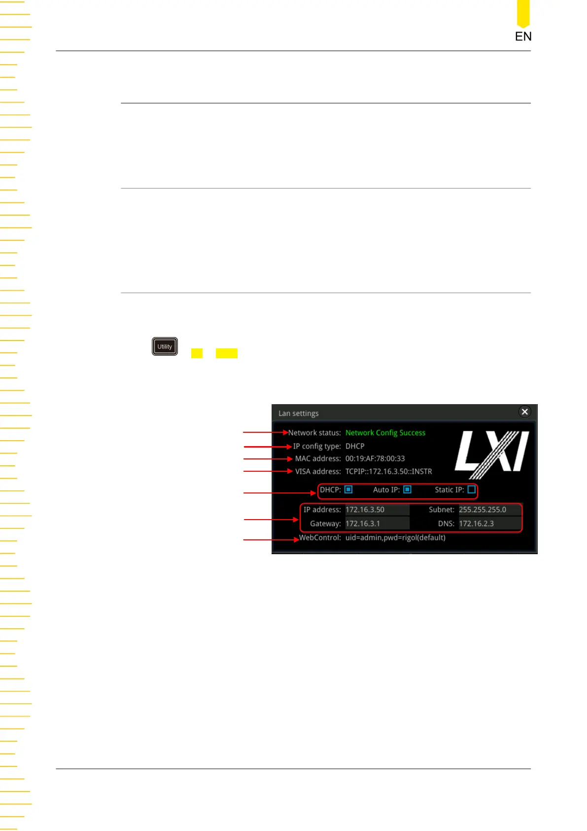 local area network. The network interface of the oscilloscope is on the rear panel.