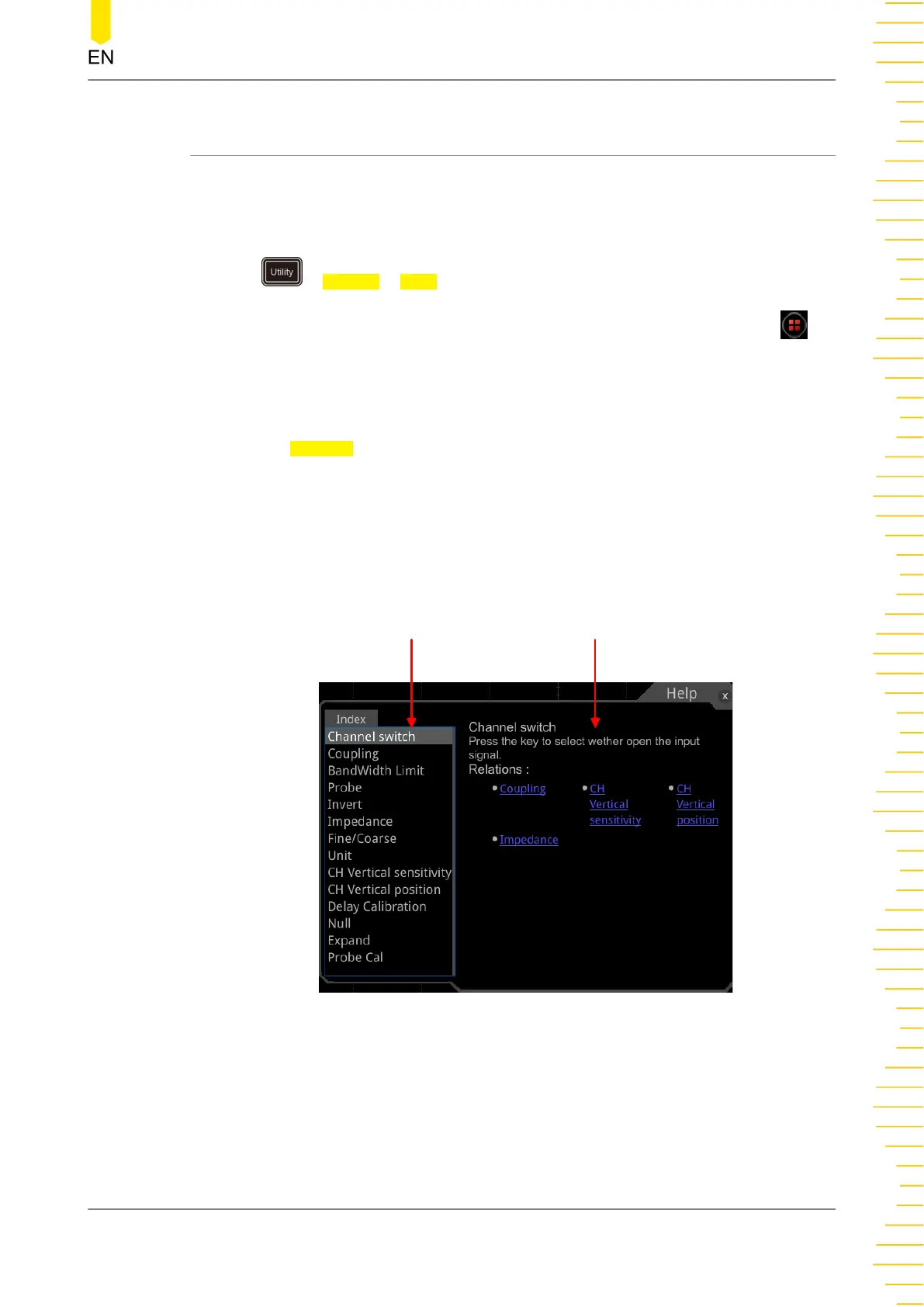 1. Press > System > Help, and then the "Help" menu is displayed on the