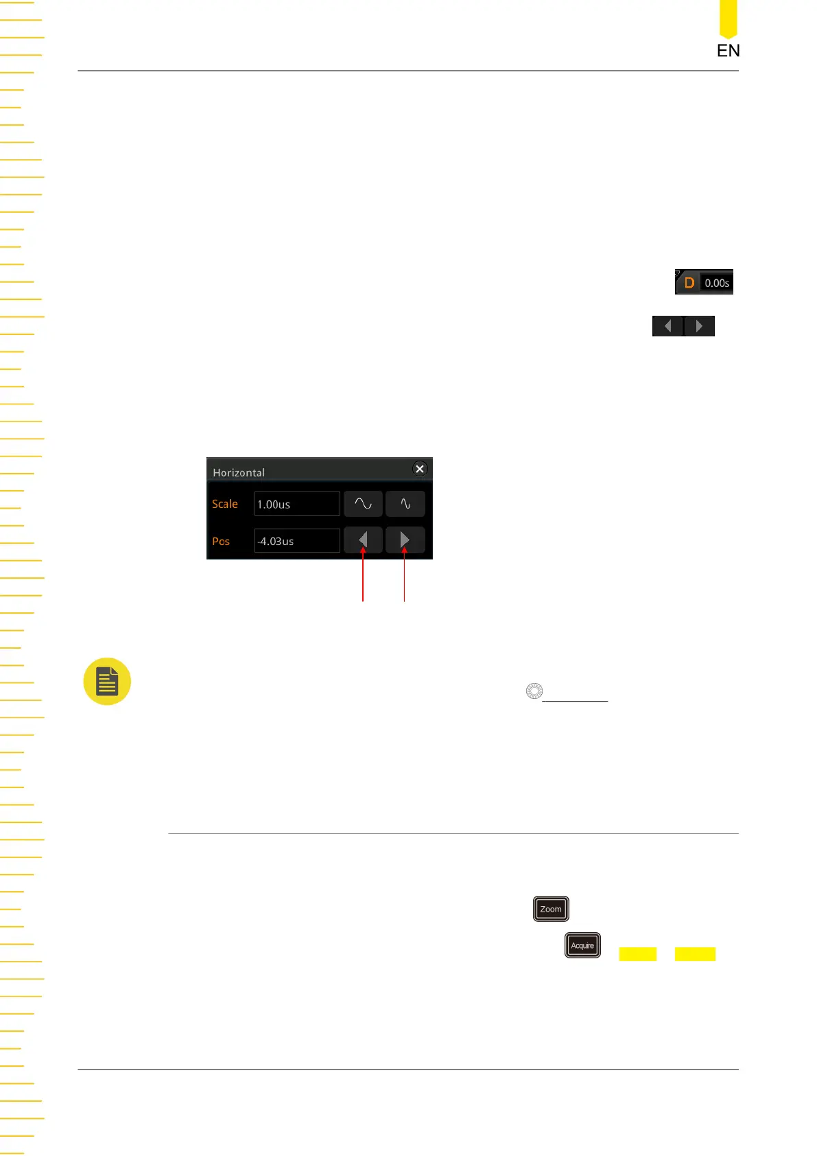 waveform trigger point moves left. Press down this knob to quickly reset the