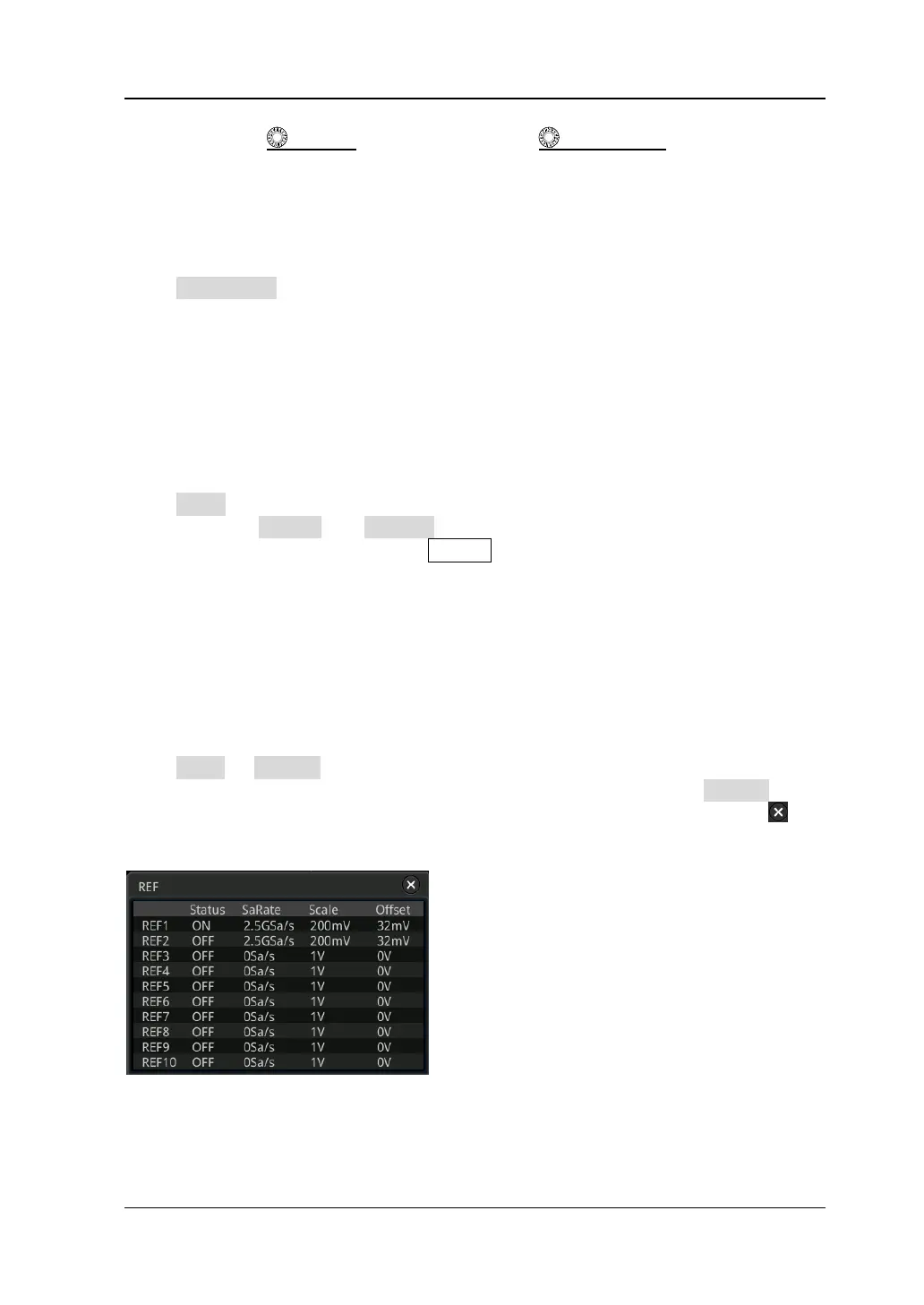 Note: This operation only clears the display of the reference waveform on the screen,