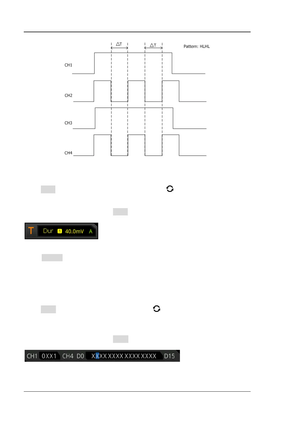 ⚫ H: sets the pattern of the channel selected to "H", i.g. the voltage level is higher