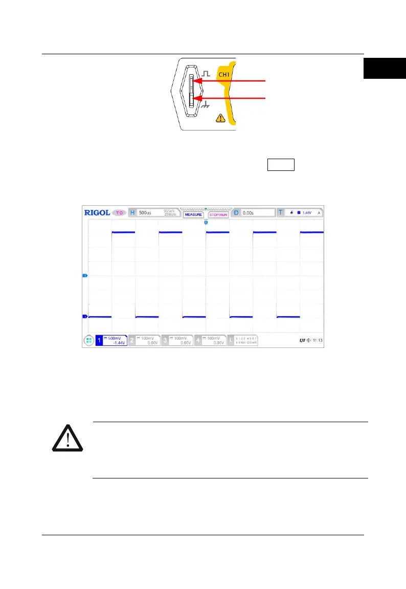 4. Set the probe attenuation to 10X, and then press AUTO.