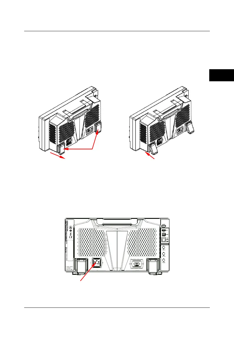 适当的调整支撑脚,将其作为支架使示波器向上倾斜,以稳定放置示波器,便于