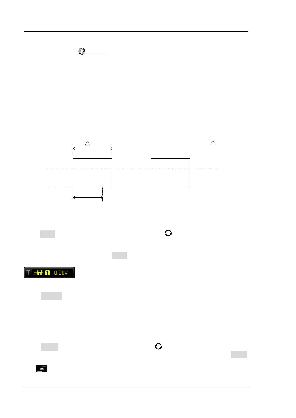 In Timeout trigger, the oscilloscope triggers when the time interval (△T) (the time