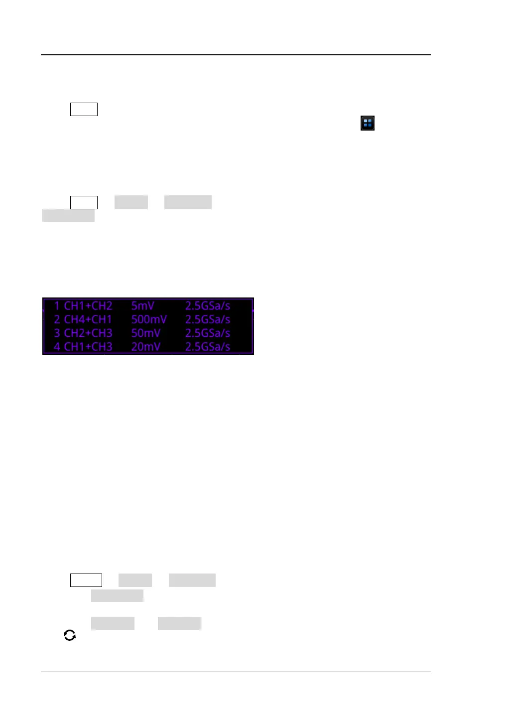 icon to open the math operation menu. This oscilloscope supports four math