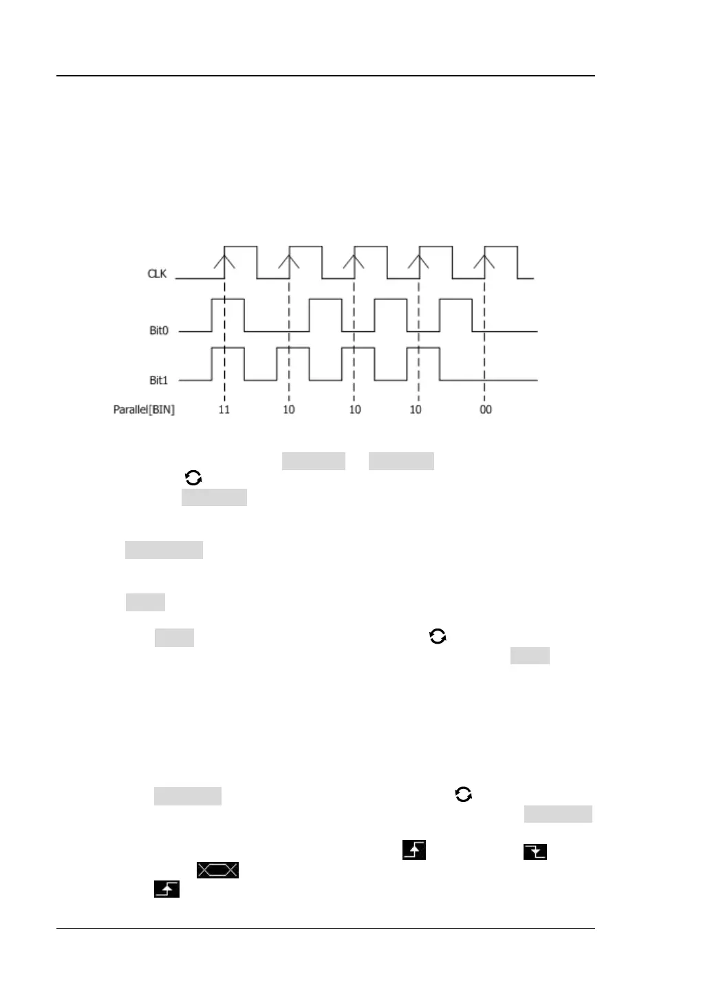 respectively. The oscilloscope will sample the channel data on the rising edge, falling