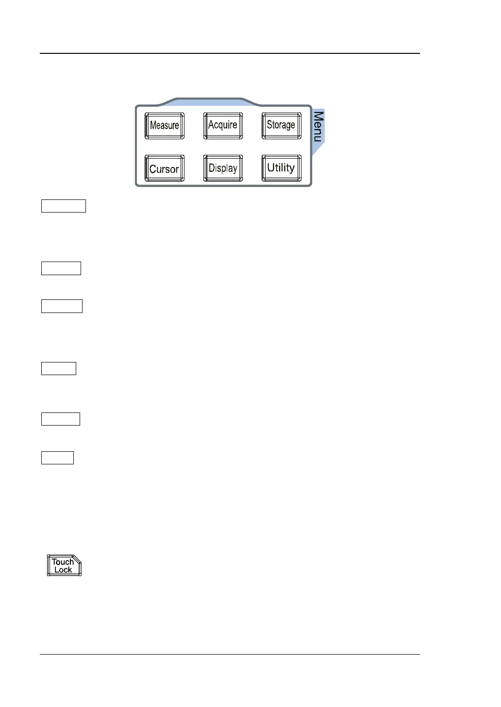 Note: By default, the touch screen function of the oscilloscope is always enabled. If