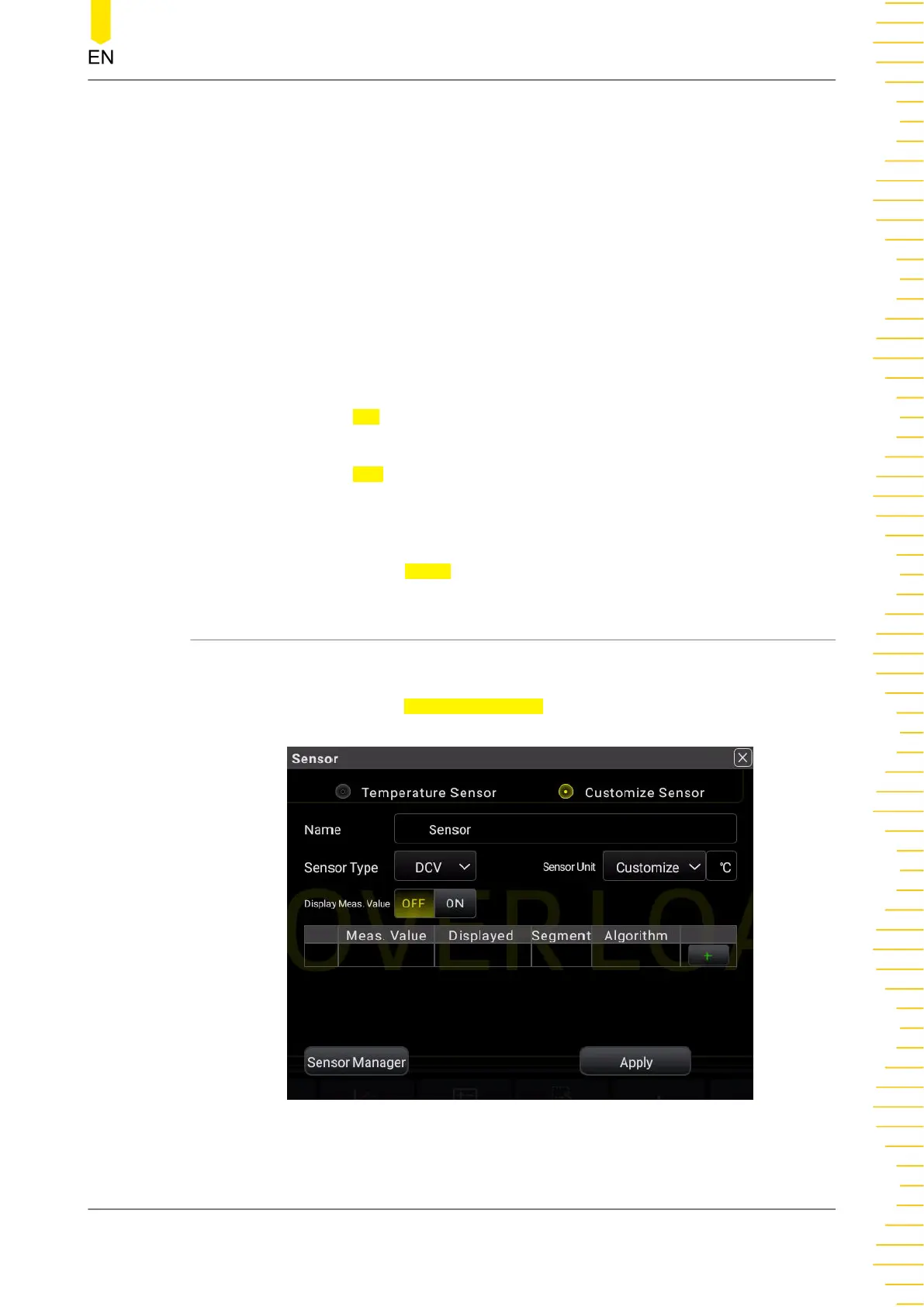 , click or tap Customize Sensor to enter the user-defined sensor