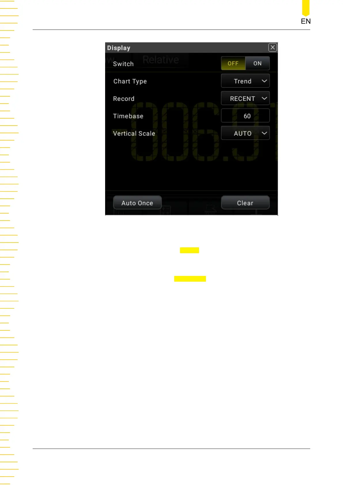 1. Click or tap the ON/OFF tab for the Switch menu to enable or disable the graph