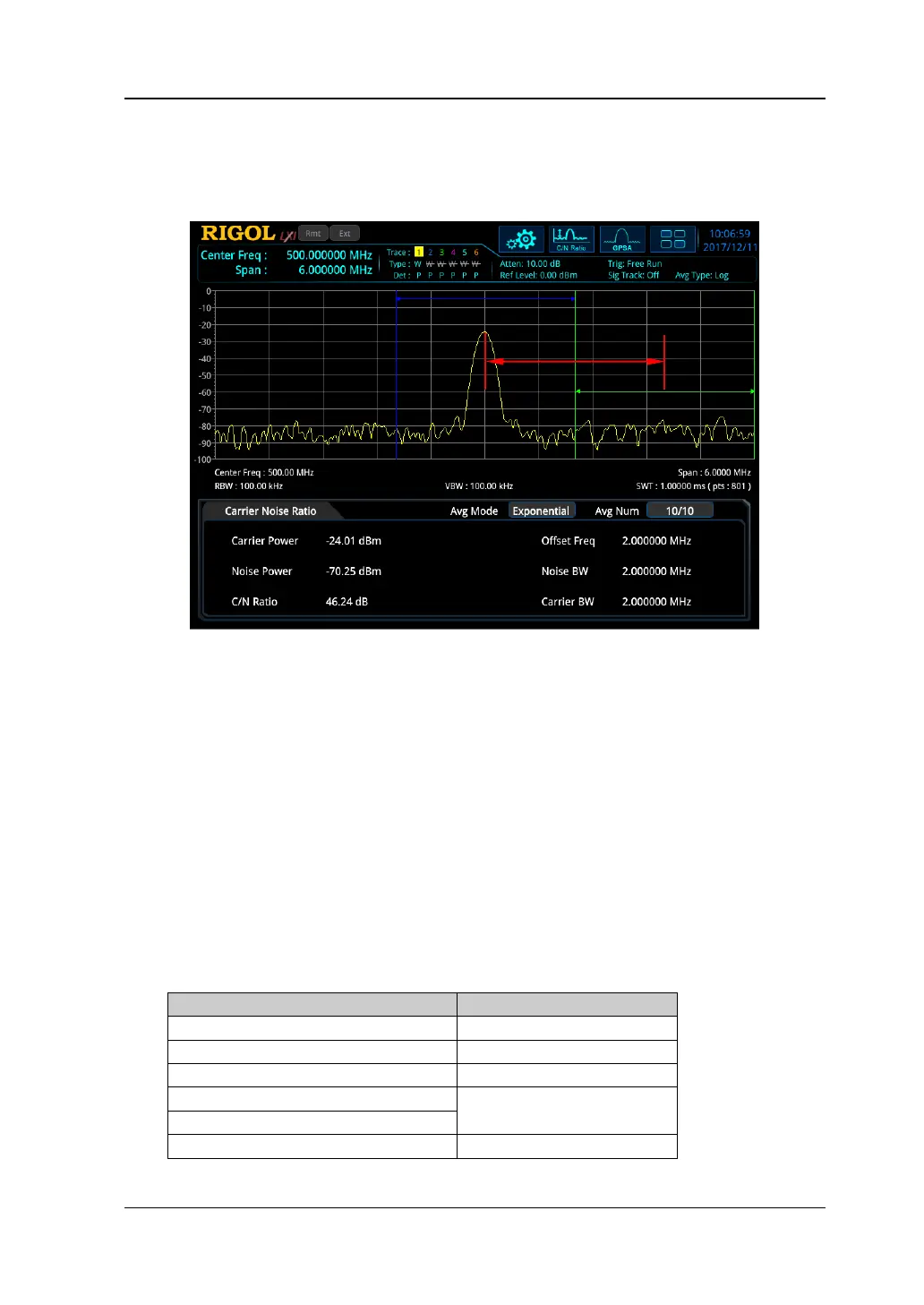 Measurement Results: carrier power, noise power, and C/N ratio.