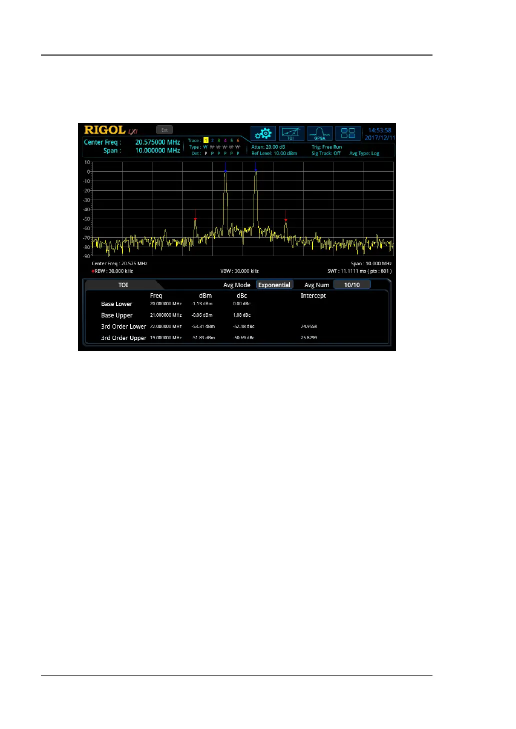 lower signal, as well as the 3rd order intercept point (Intercept) of the base lower