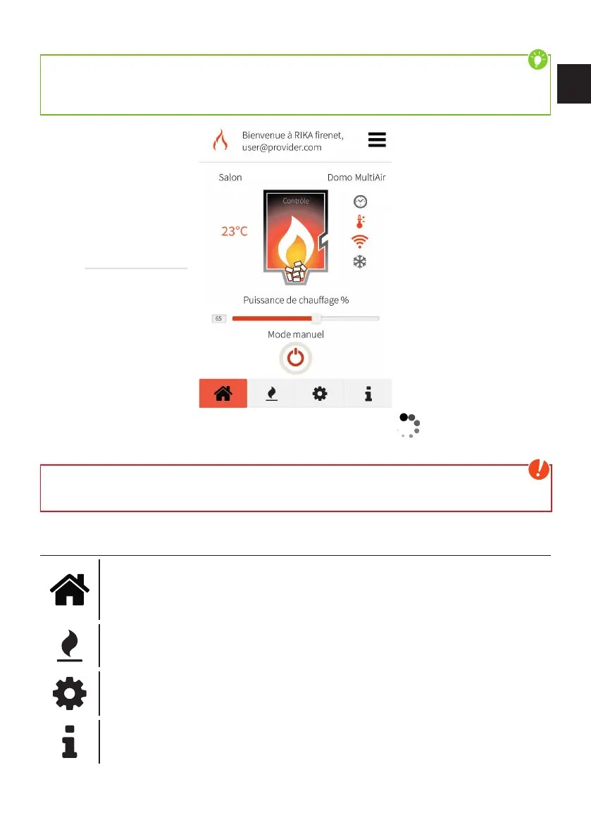 l’écran tactile de votre poêle. La commande passant par Internet comprend uniquement les