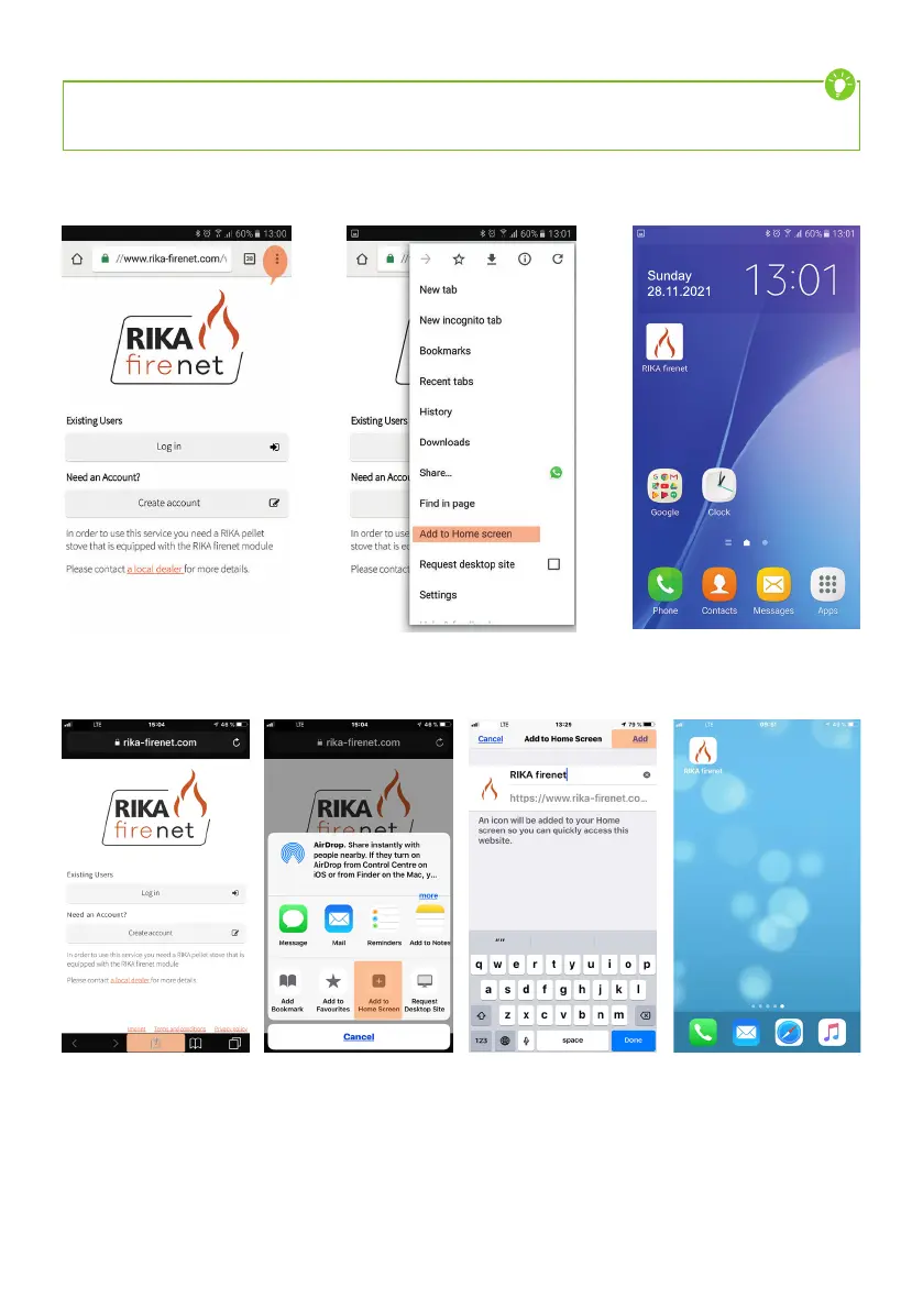 For direct and convenient access, www.rika-firenet.com can be added to your start screen