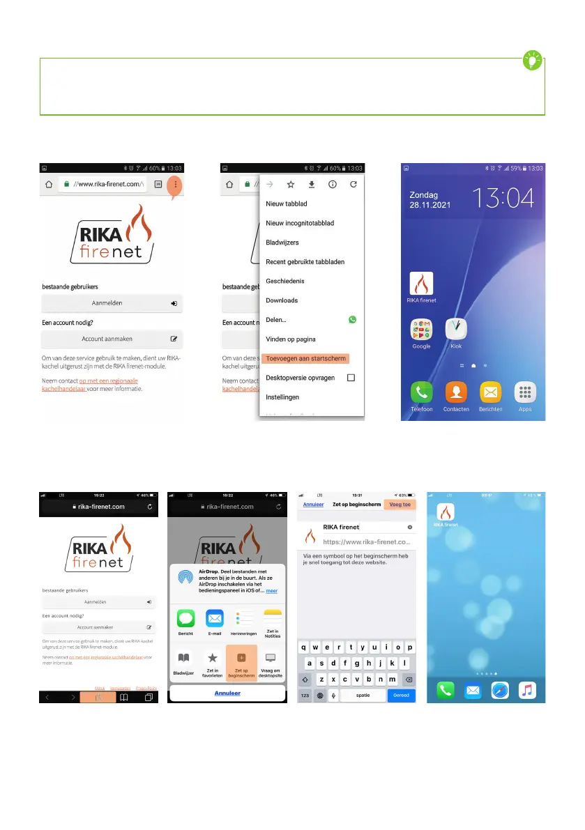 www.rika-firenet.com op uw startscherm/bureaublad plaatsen met het symbool van de