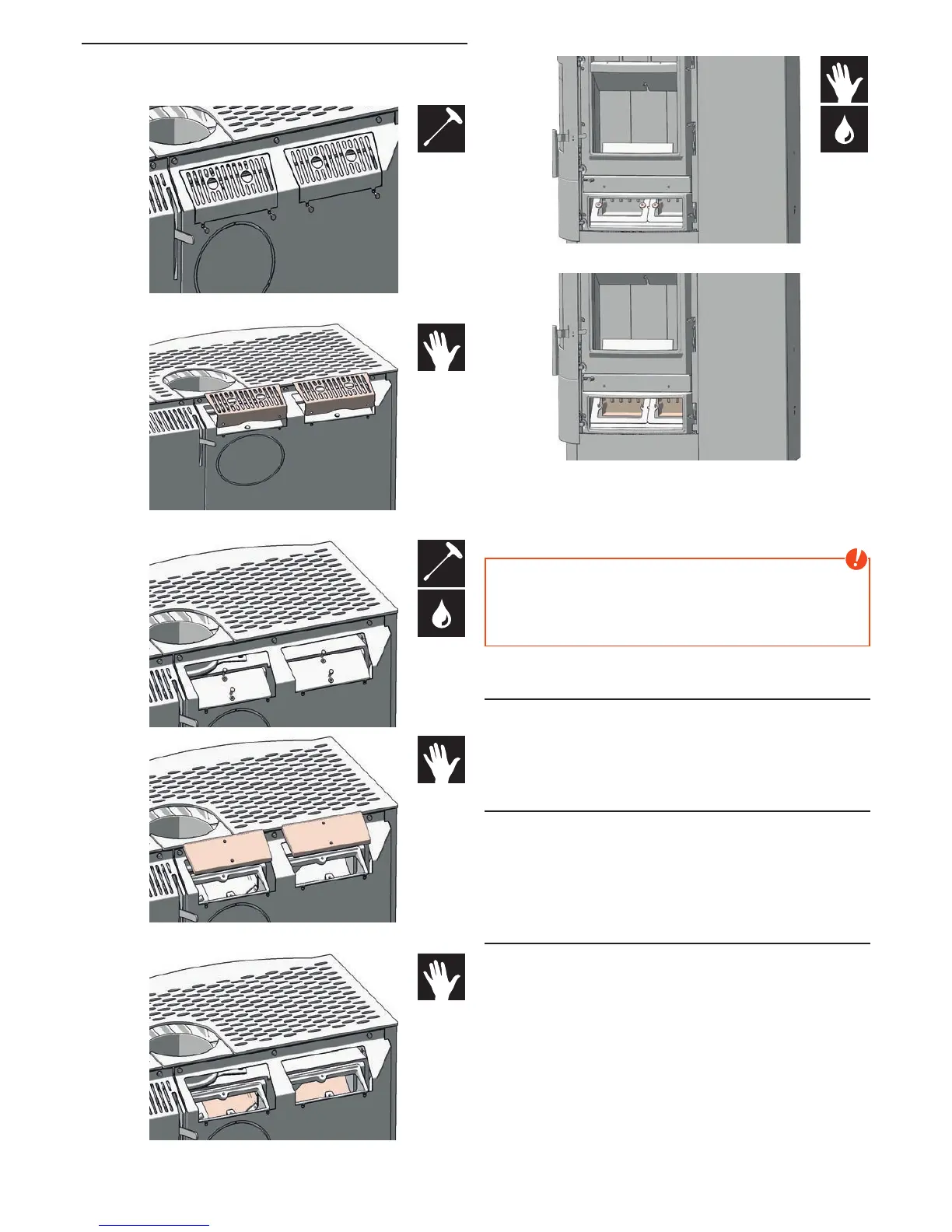 The flue pipes should be cleaned at least 2 x a year or after approx. 700 kg