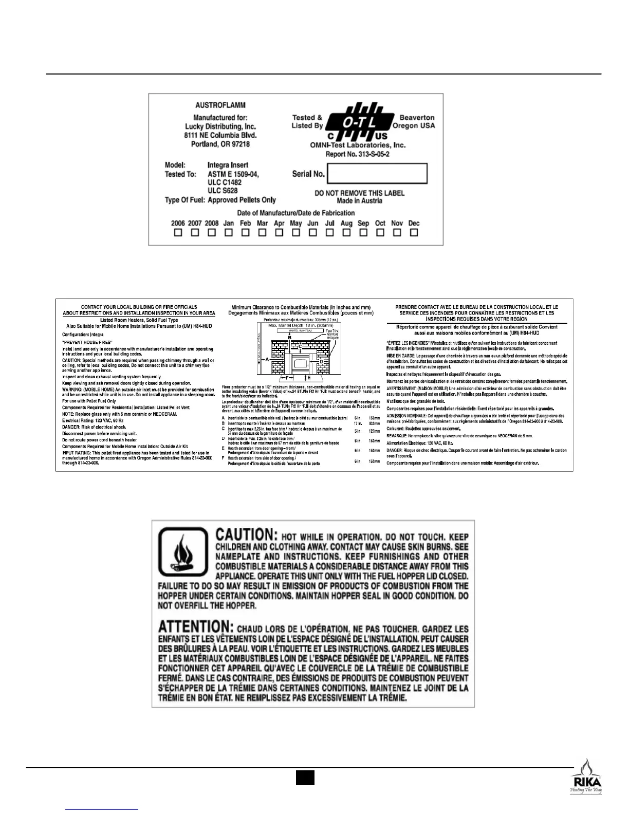 OMNI SAMPLE LABEL FOR INTEGRA PELLET STOVE INSERT