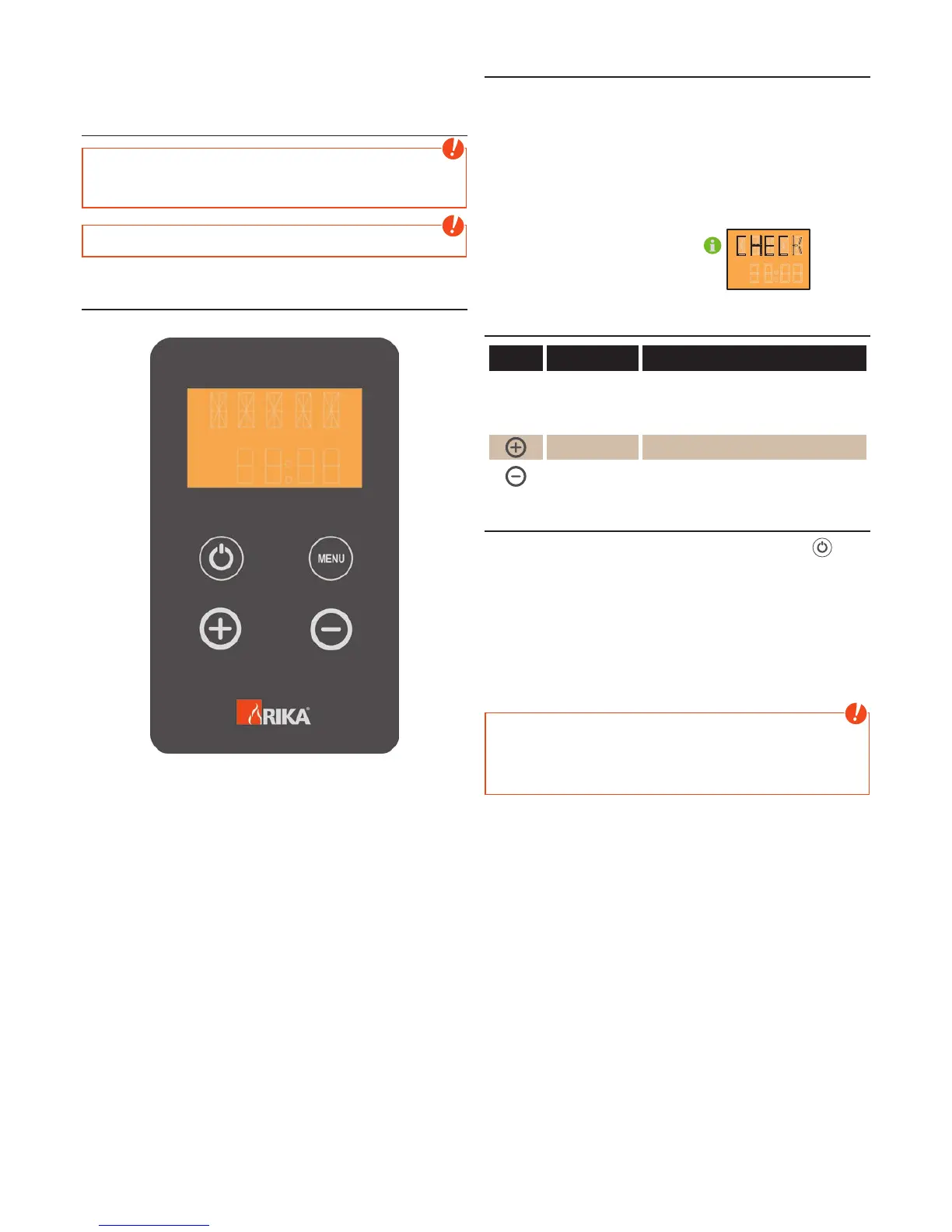 all components. When „CHECK“ disappears from the display the stove can be