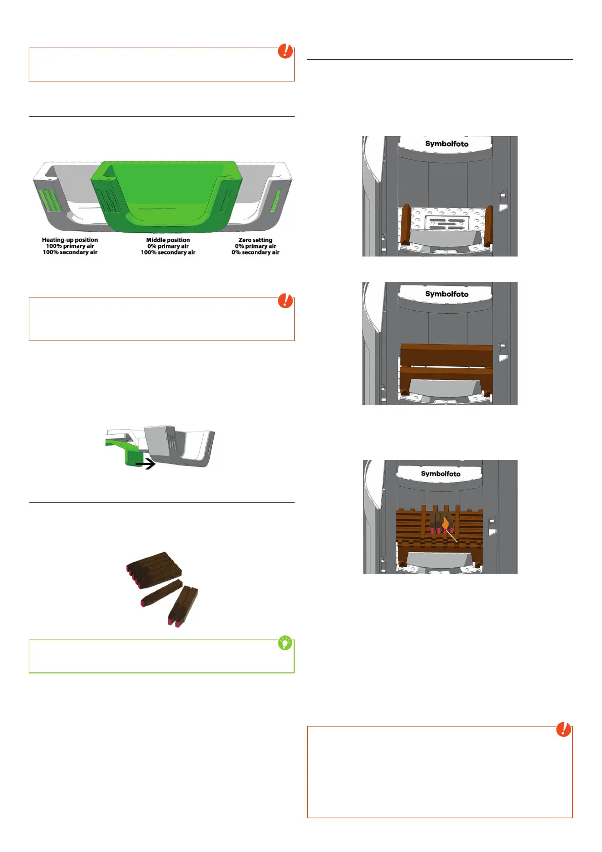 After the first burn-off, again add two logs (see AMOUNT OF FUEL).