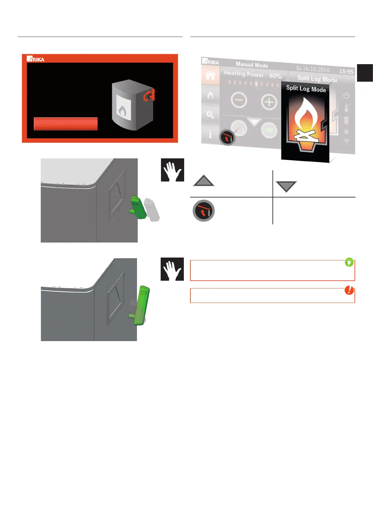If the flue gas flap is open, a warning appears on the display� It