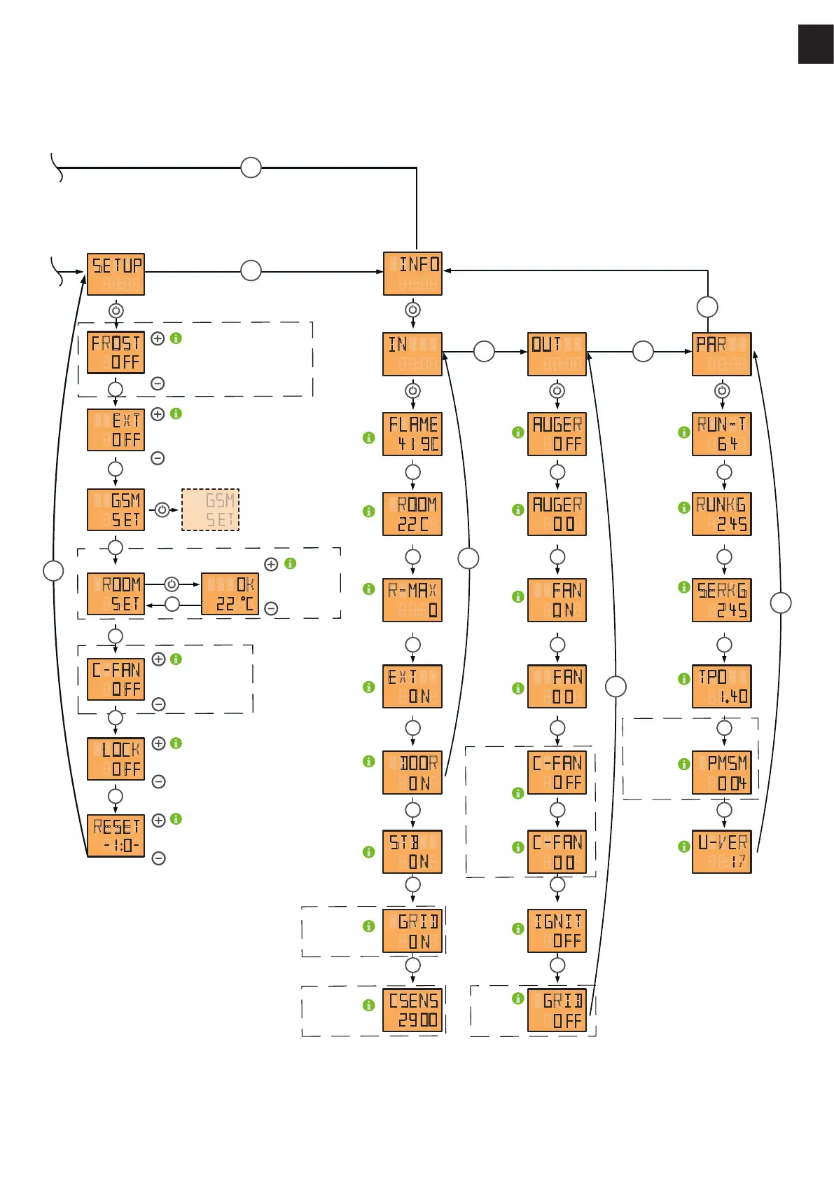 Con il tasto „+“ e „-“ viene attivata e disattivata