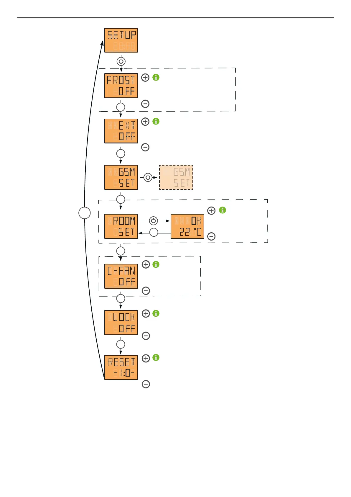 using the „+“ and „-“ key. The frost protection function
