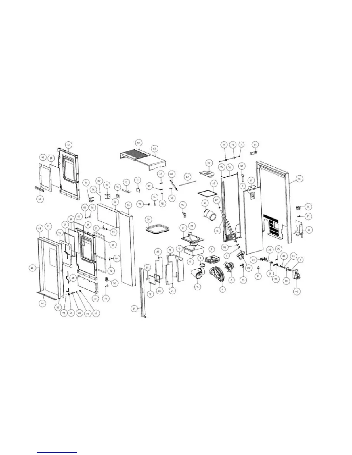 1. Open the convection cover (part 55) until the cover securing mechanism (part 56) locks in place.