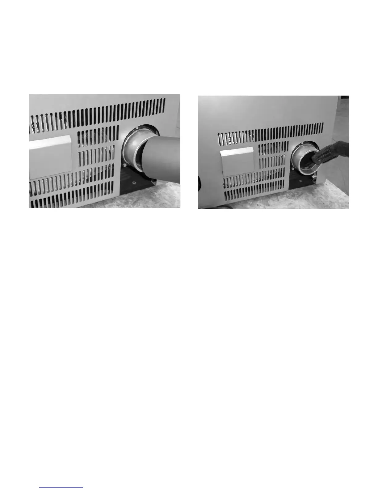 To clean the flue pipe connection disconnect the flue pipe from the flue gas fan (see picture below left) and