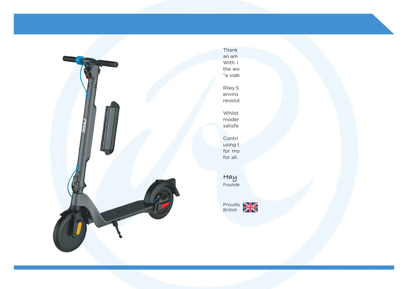 Thank you for choosing a Riley Scooter. We are a British start-up with