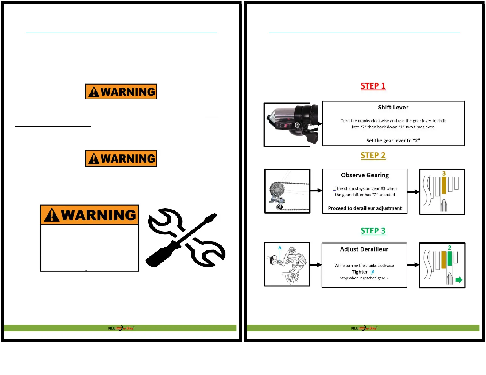 RILU advises using a bike service stand when performing gearing and
