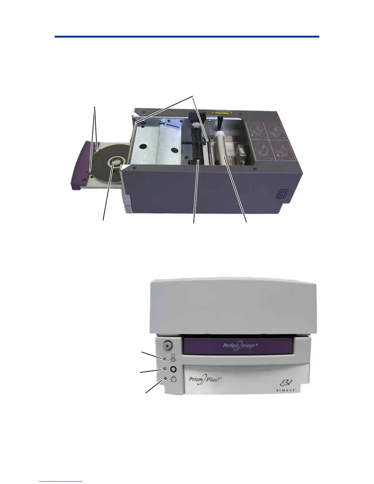 Rimage Prism - Identificación de las Piezas de la Impresora Prismplus; Vista Delantera