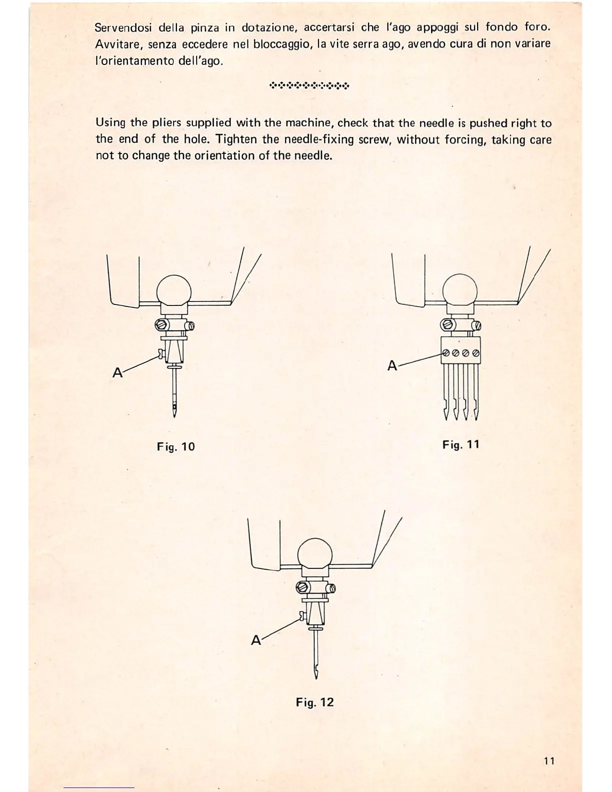 Servendosi delia pinza in dotazione, accertarsi che I'ago appoggi sul fondo foro.