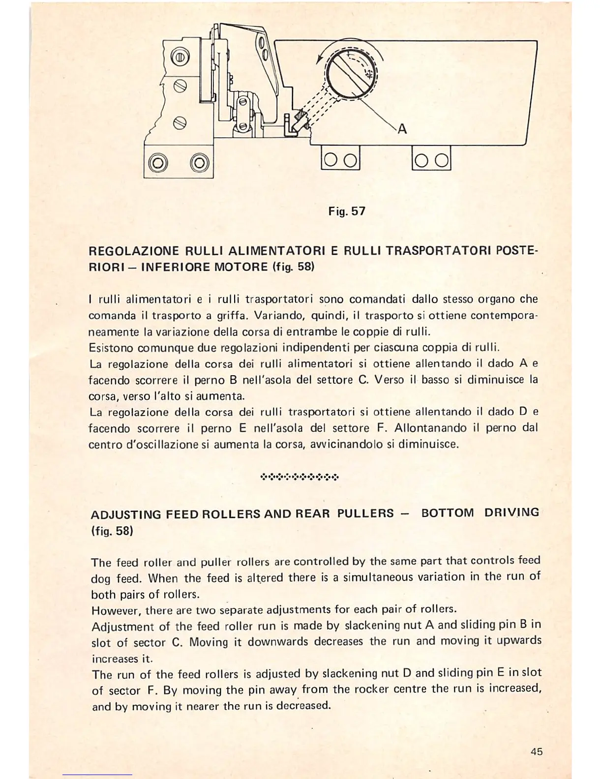 feed rollers is adjusted by slackening nut D and sliding pin E in