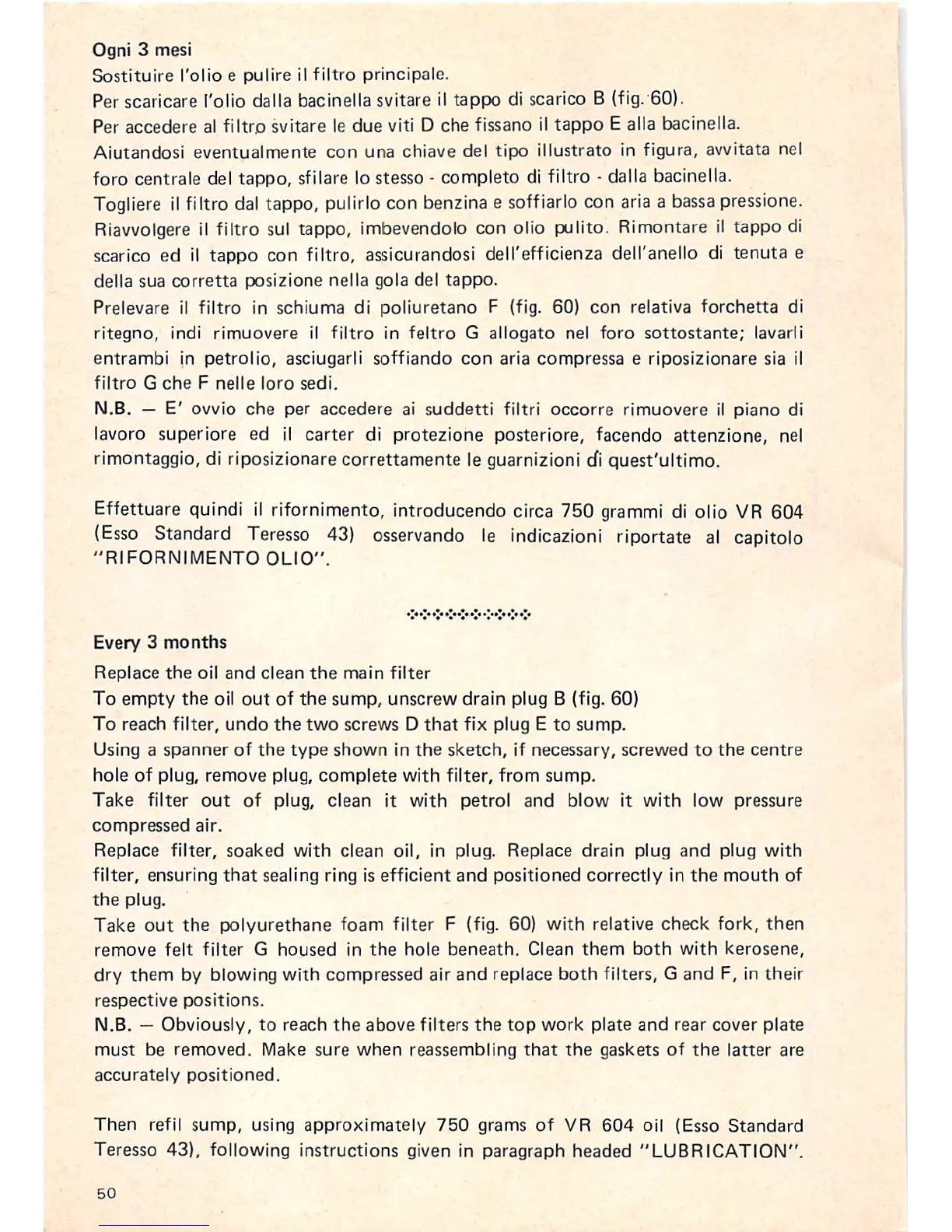 Teresso 43), following instructions given In paragraph headed "LUBRICATION".