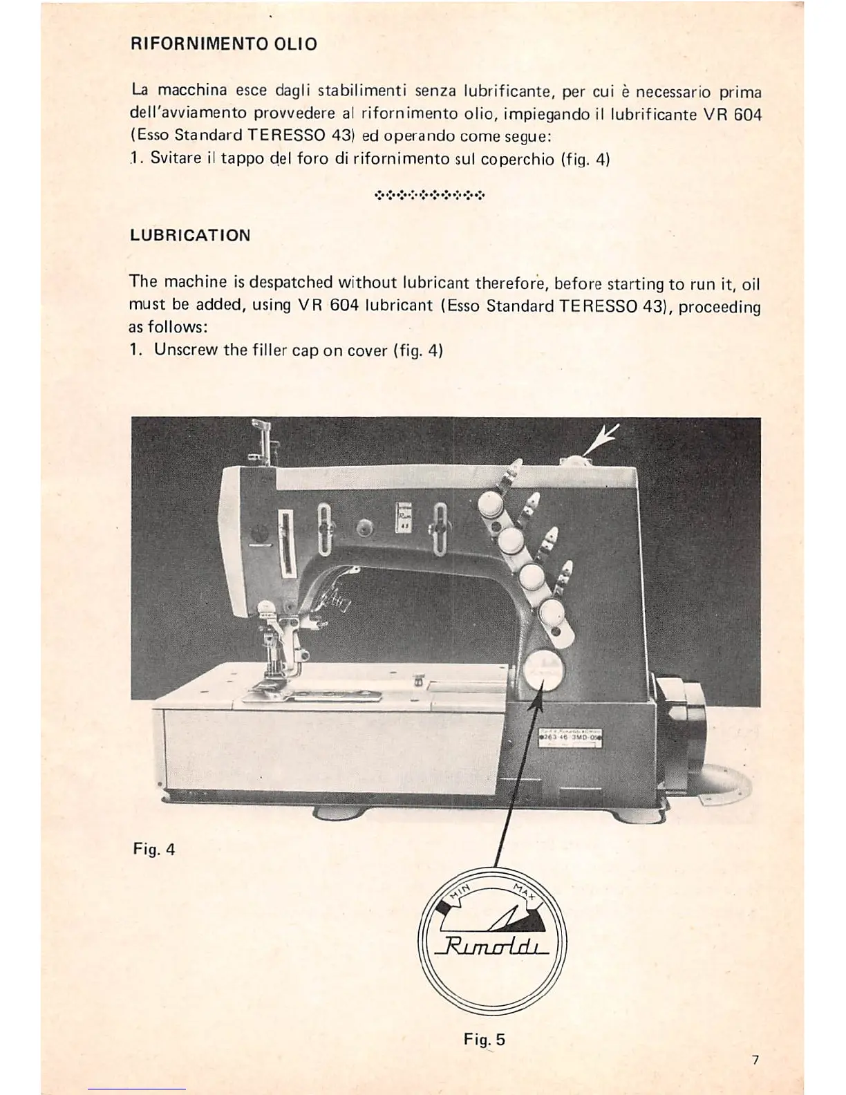 deM'avviamento provvedere al rifornimento olio, impiegando il lubrificante VR 604