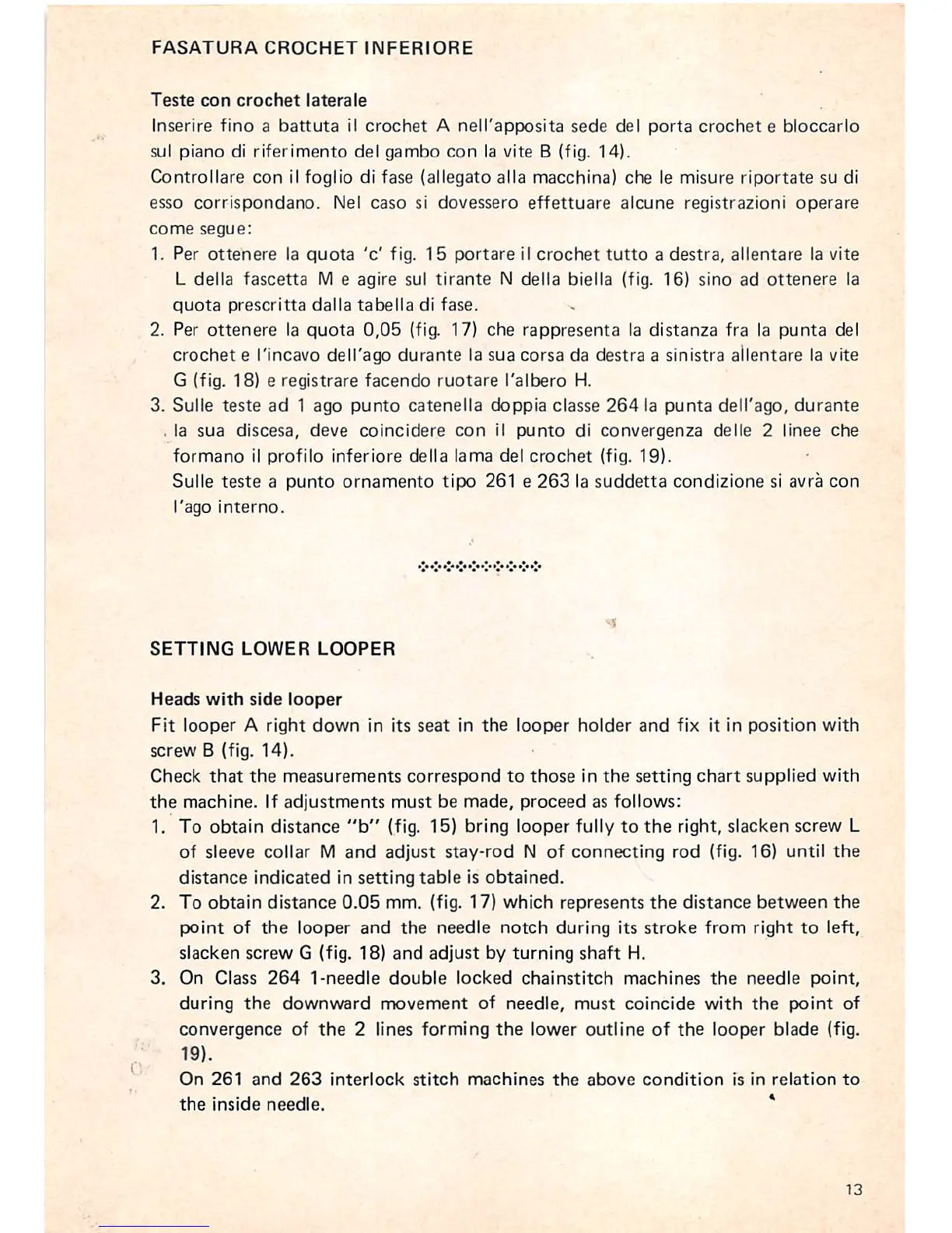 Rimoldi 263 - LOOPER SETTINGS AND ADJUSTMENTS; LOWER LOOPER SETTINGS