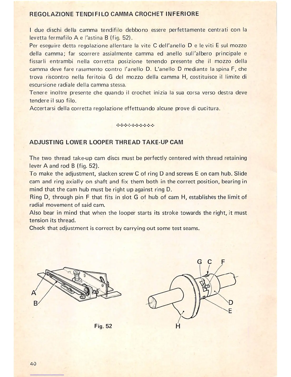 Rimoldi 263 - REGOLAZIONE Lendifilo CAMMA CROCHET INFERIORE; Adjusting Lower Looper Thread Take-Up Cam