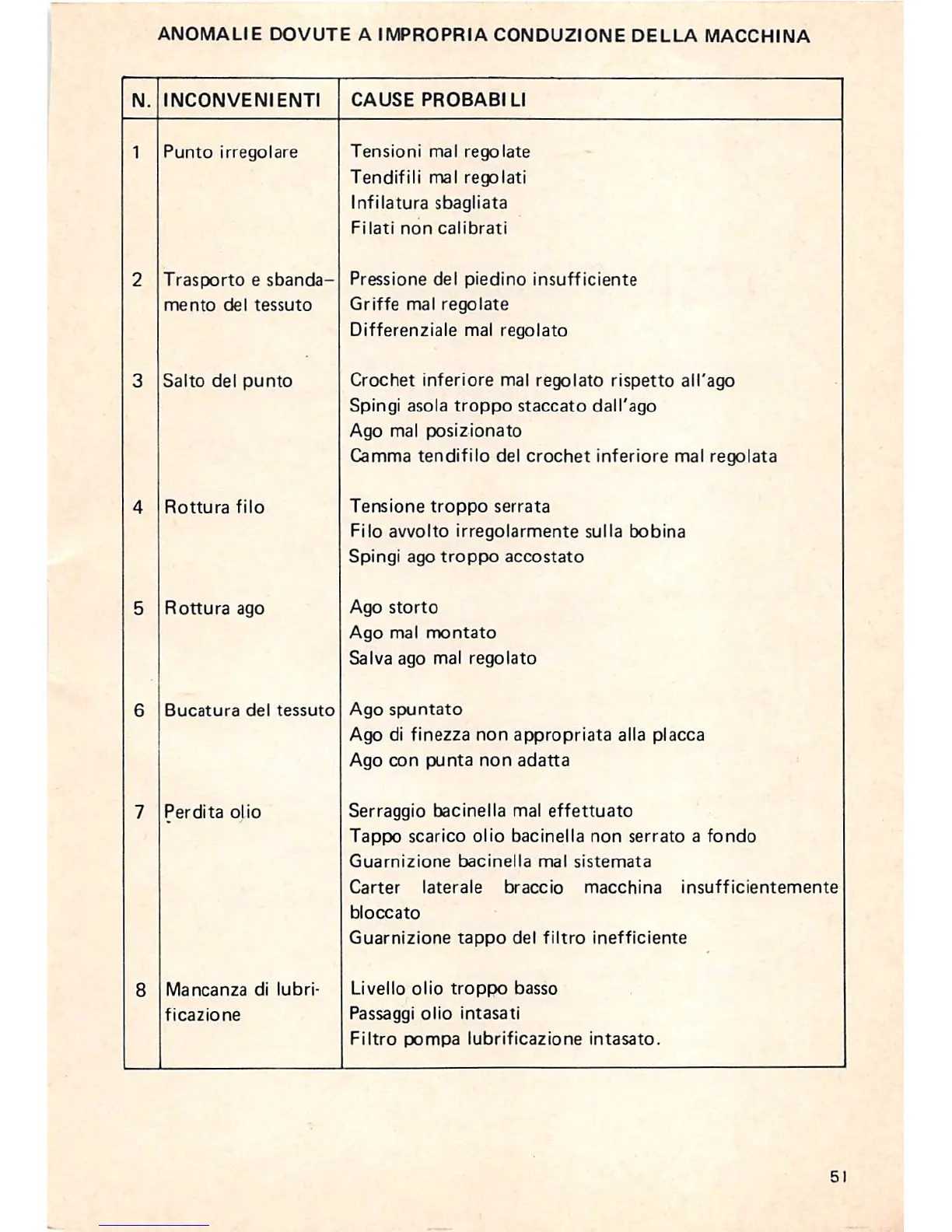 Rimoldi 263 - TROUBLESHOOTING GUIDE
