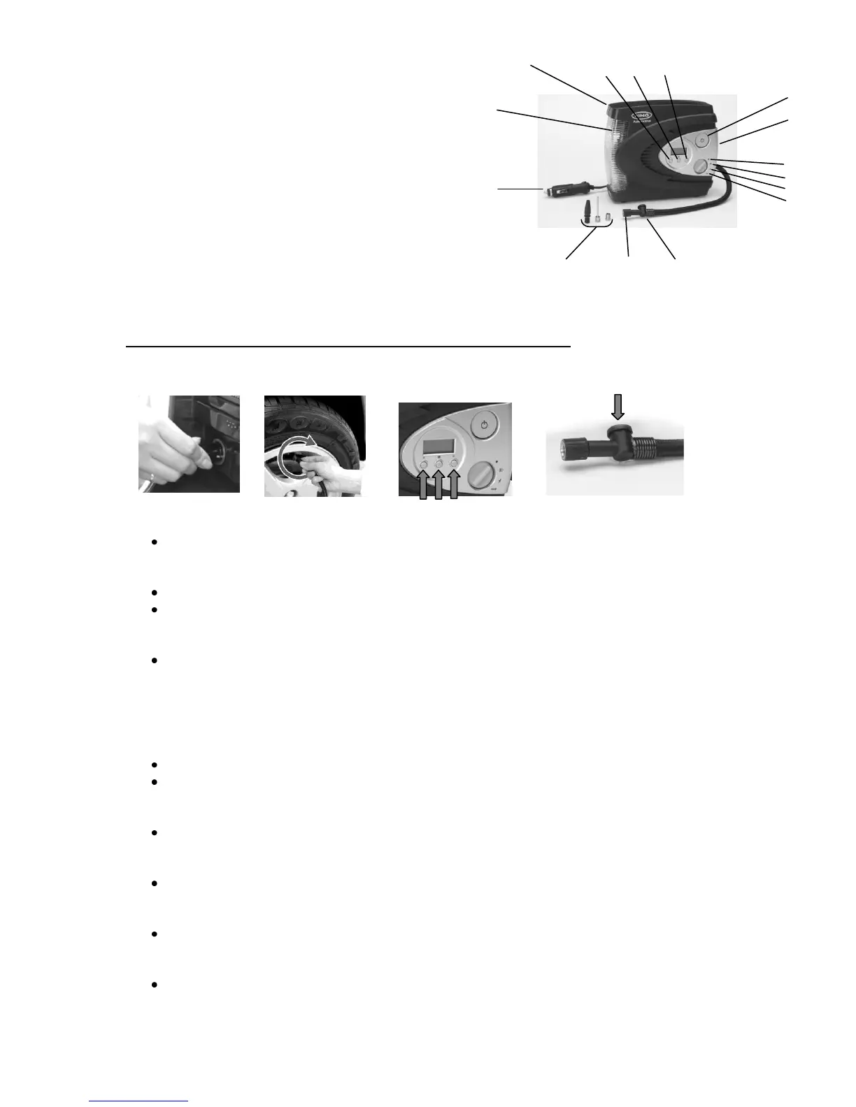 compressor, ensuring all the cable is unwound. Insert the 12v DC plug into the 12v
