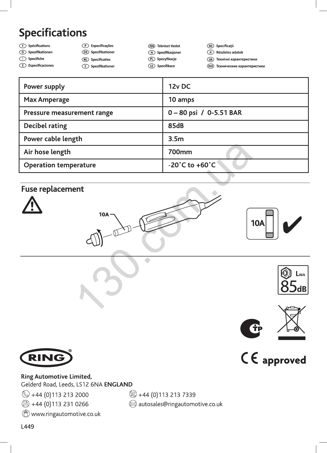 ring RAC635 - Specifications and Maintenance; Technical Data; Fuse Replacement
