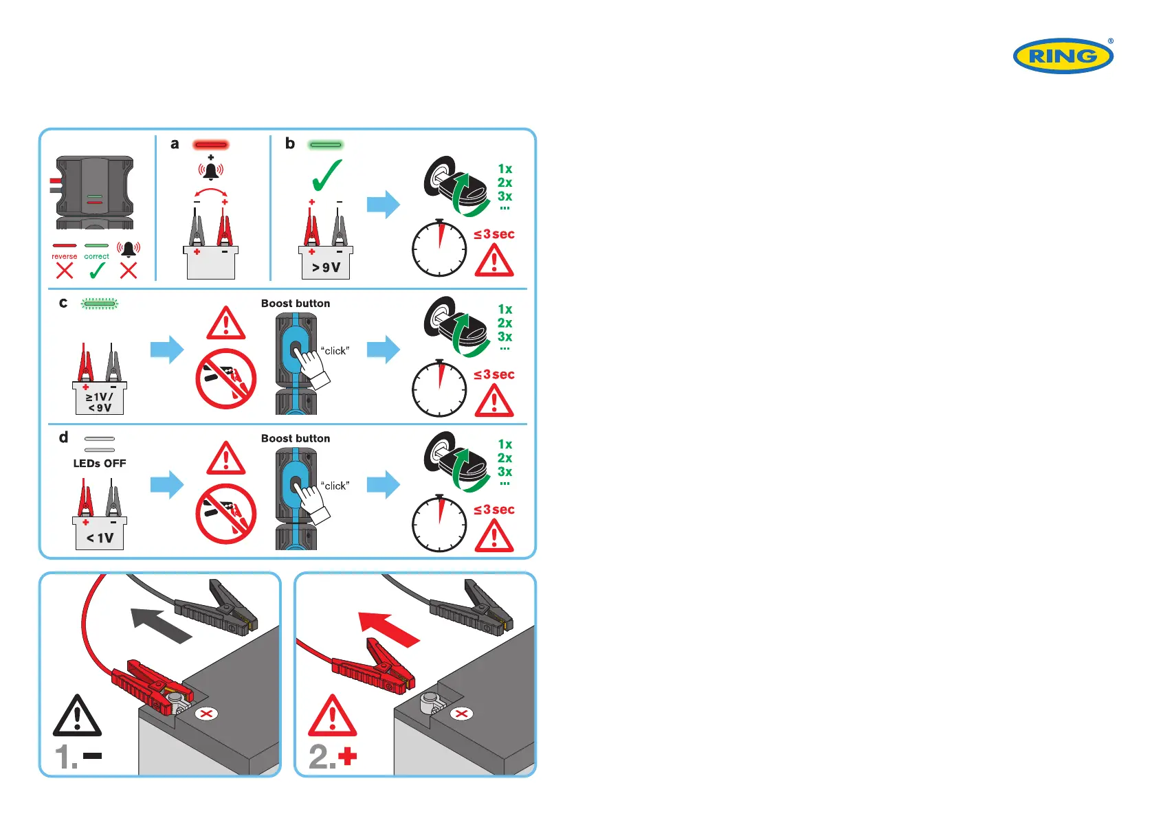 battery. WARNING: Explosive gases. Prevent flames and sparks. WARNING: Use of