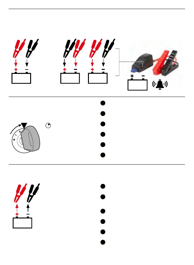 black clamp to negative terminal. If Red led lights up and buzzer sounds clamps are connected the wrong