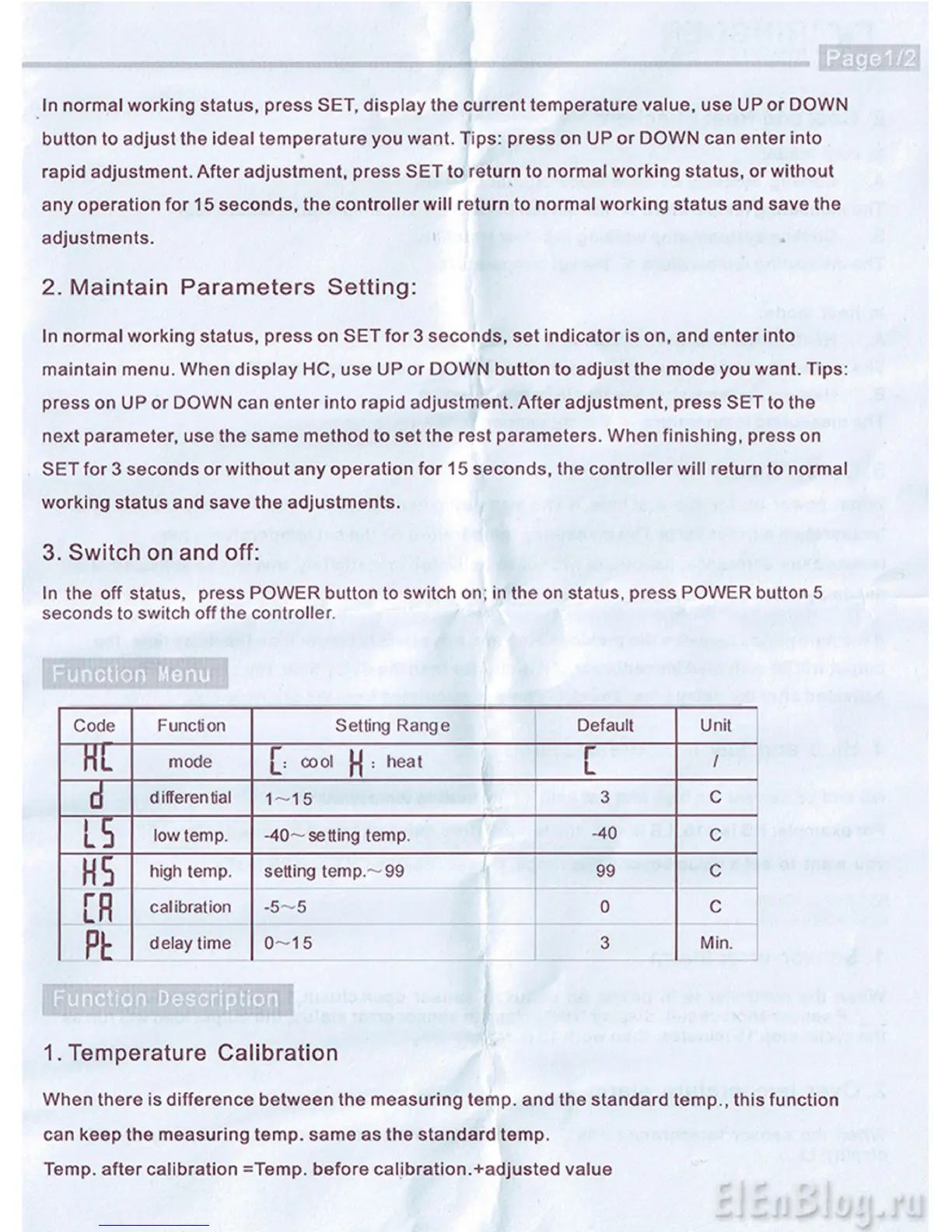 Temp, after calibration =Temp. before calibration.+adjusted value