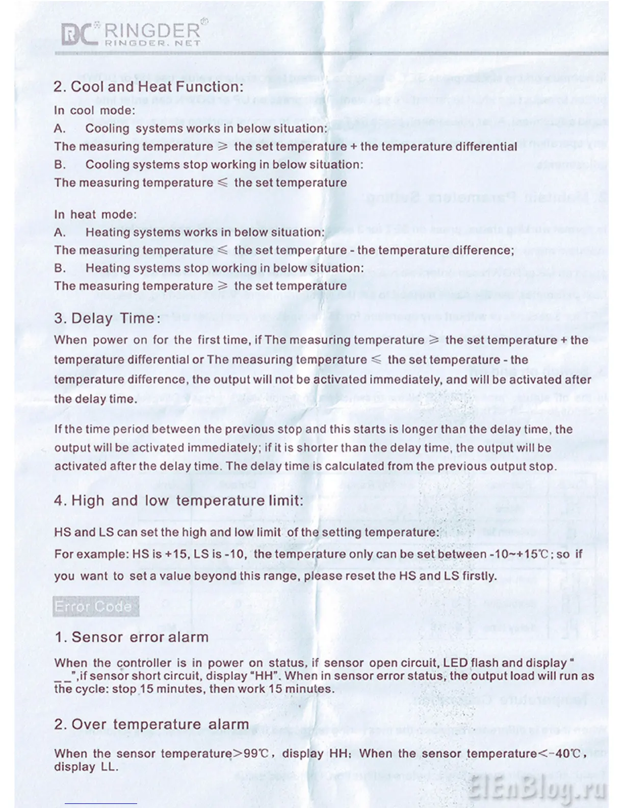 For example: HS is +15, LS is -10, the temperature only can be set between -10~+15*C; so if