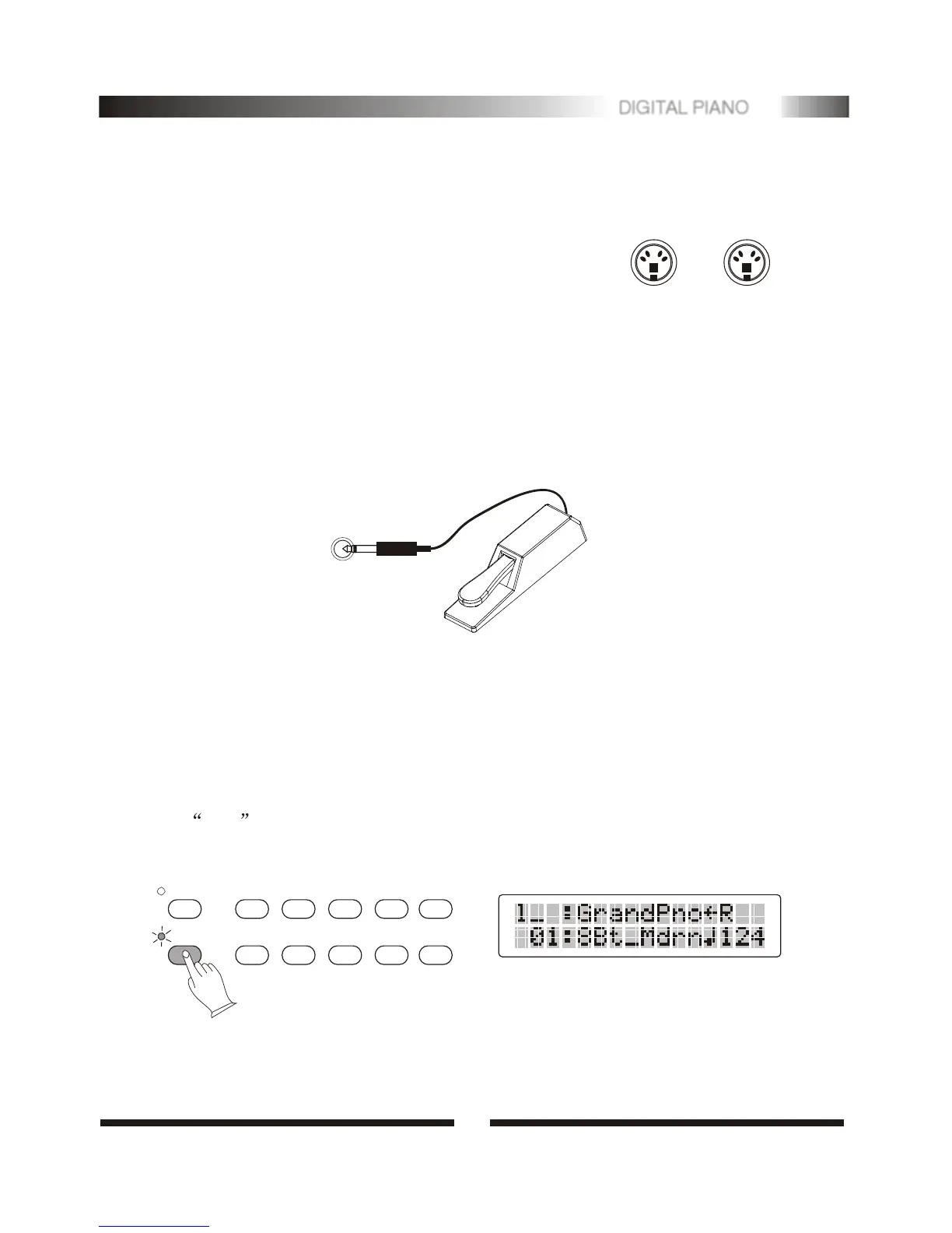 piano function. The Sustain Pedal functions as a damper pedal controlling sustain.