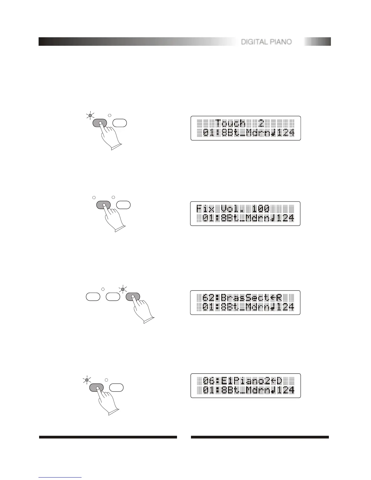 softly you play the keyboard. You can press [TOUCH] for few seconds. LCD will