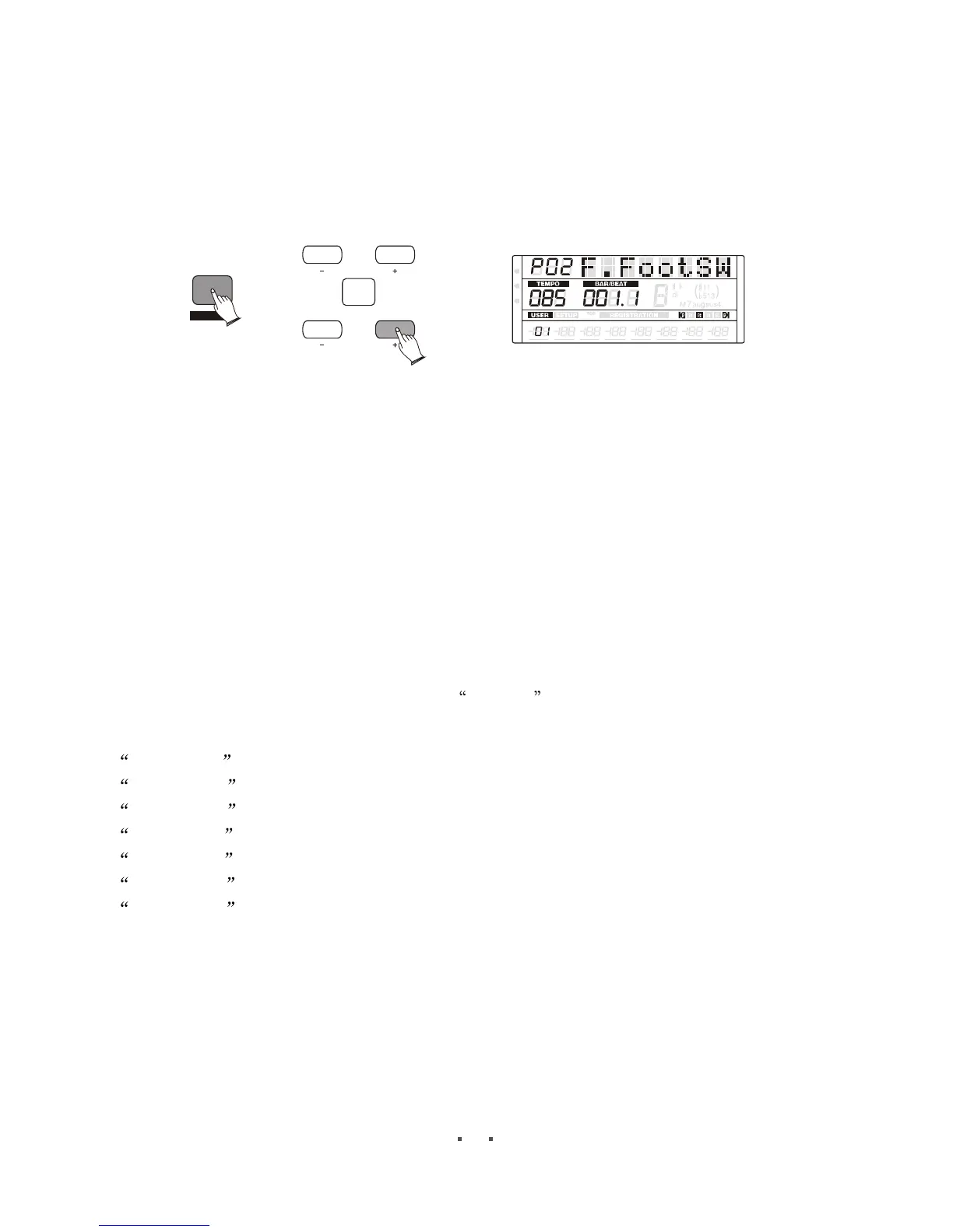 When LCD displ ayP02F.FootSW, press [ITEM/PAGE +] button to set F.FootSW, then