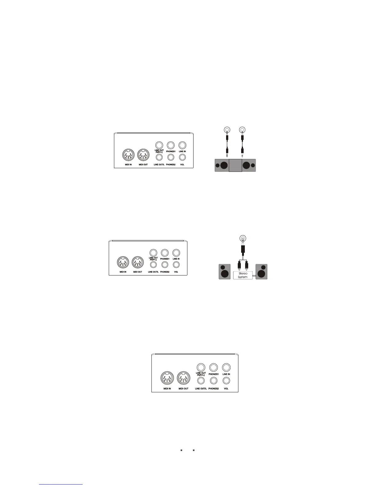 equipment. To connect the instrument in stereo to an external amplification system connect