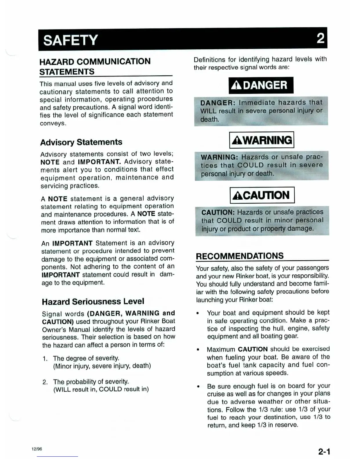 Rinker Cruisers - Safety; Safety Recommendations and Procedures