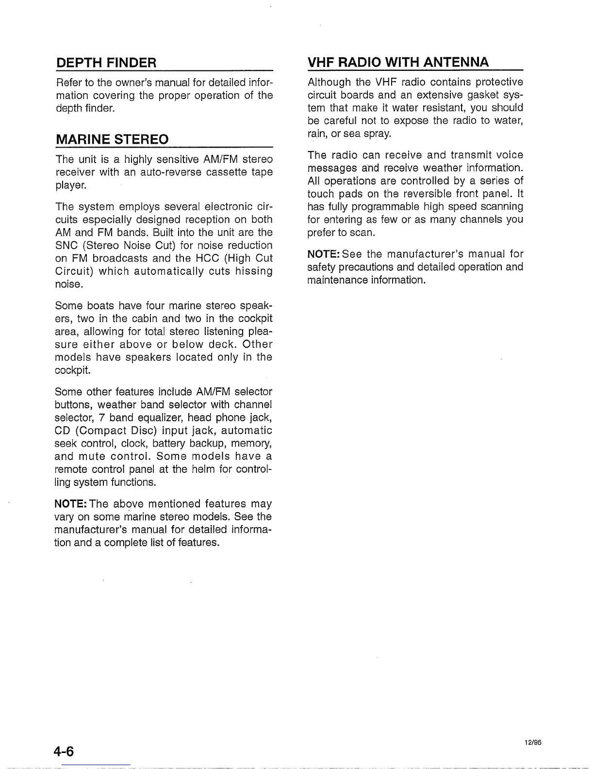 Rinker Cruisers - Depth Finder; Marine Stereo; VHF Radio with Antenna